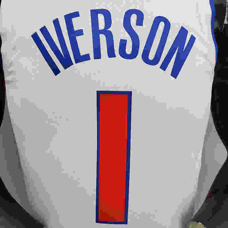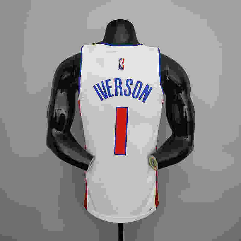 75th Anniversary Iverson #1 Pistons White NBA Jersey S-XXL(04A1)