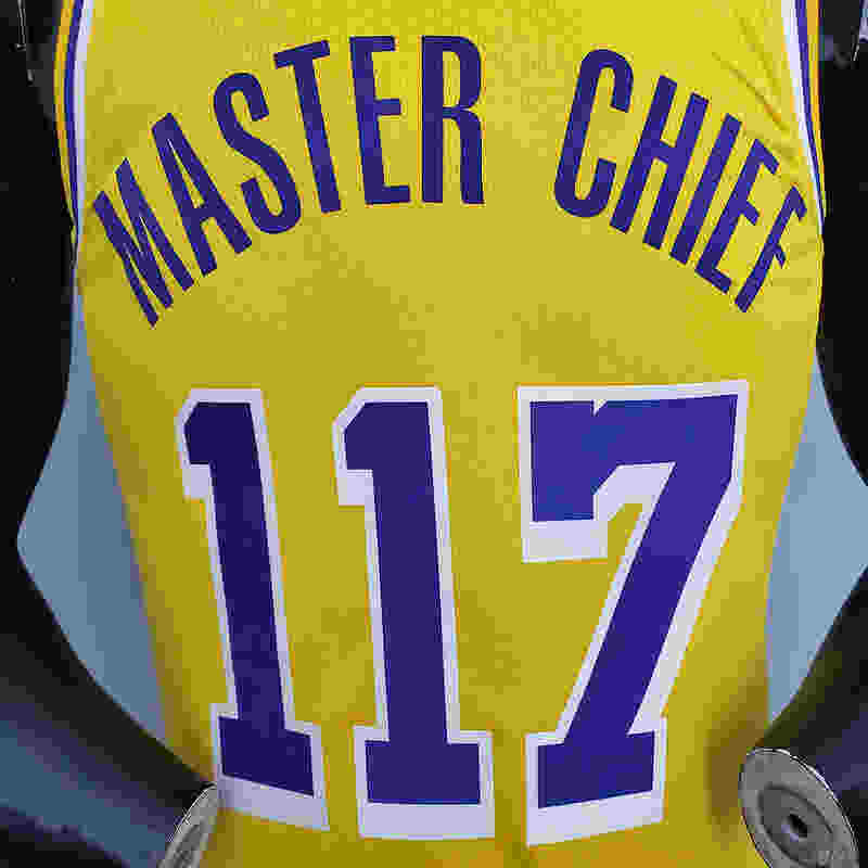 75th Anniversary master chief#117 Lakers White X-BOX Joint Yellow NBA Jersey S-X...(6E14)
