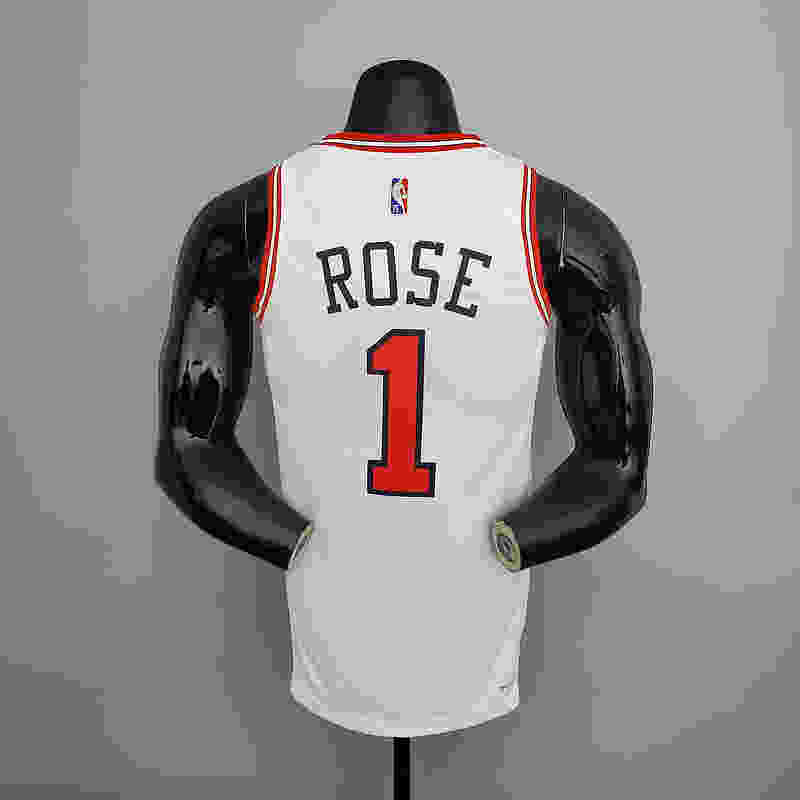 75th Anniversary Rose #1 Bulls White NBA Jersey S-XXL(8E96)