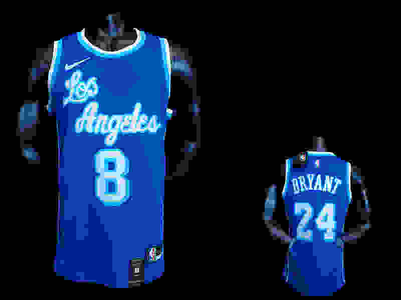 New Bryant #8 After Bryant #24 Lakers Blue NBA jersey Size︰ XS-XXL Nike connect ...(5E7A)