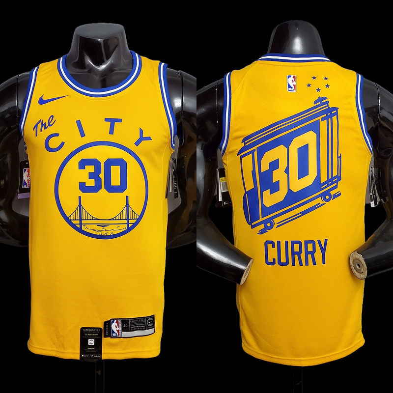 Tram version CURRY#30 Golden State Warriors yellow NBA jersey S-XXL